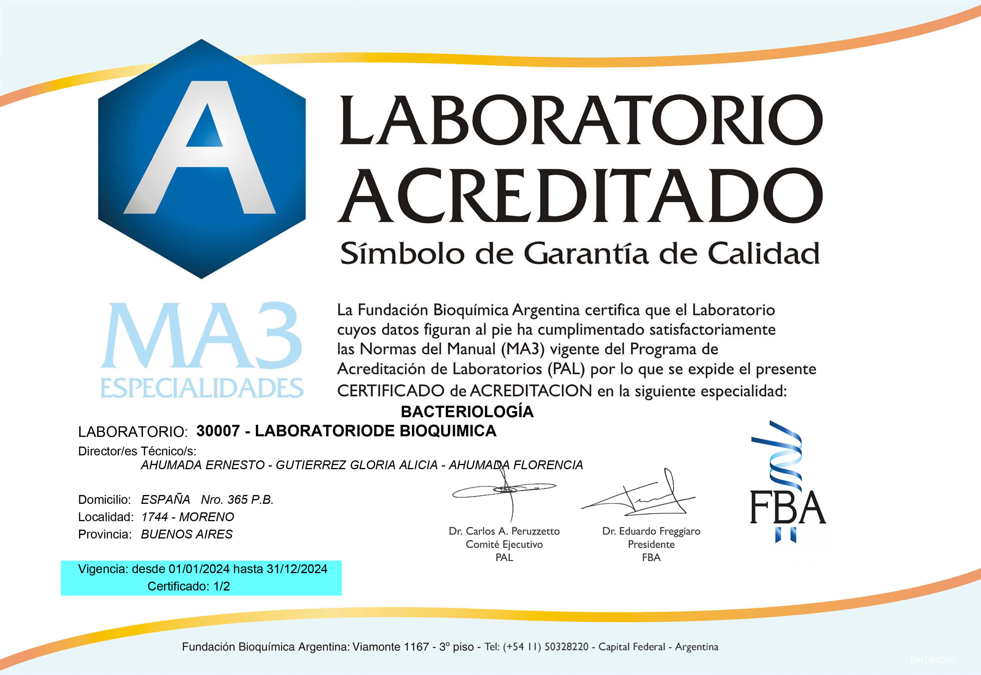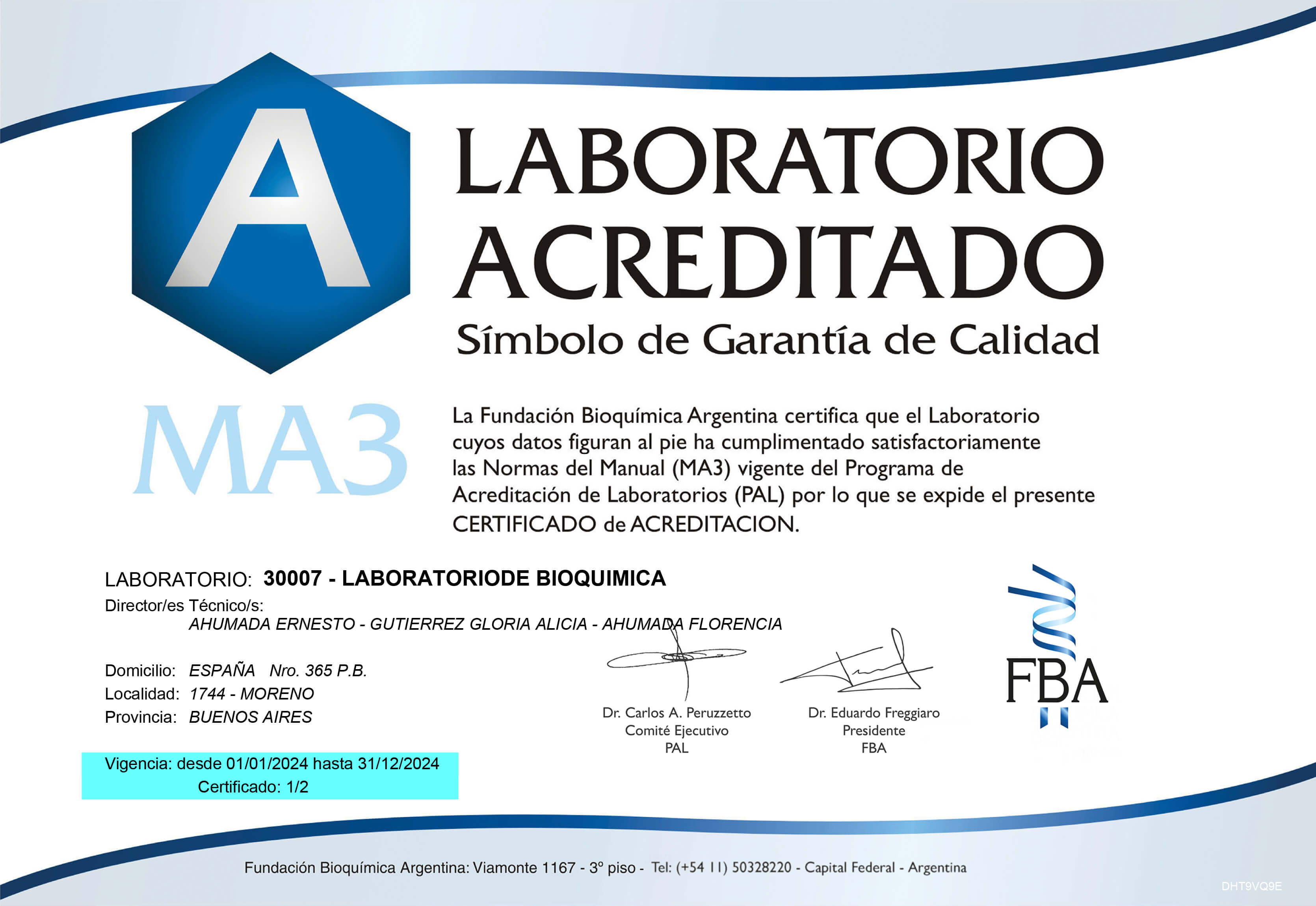 Contamos con la acreditación de la Fundación Bioquímica Argentina a través de su Programa de Acreditación de Laboratorios (PAL) y del Programa de Evaluación Externa de Calidad (PEEC).